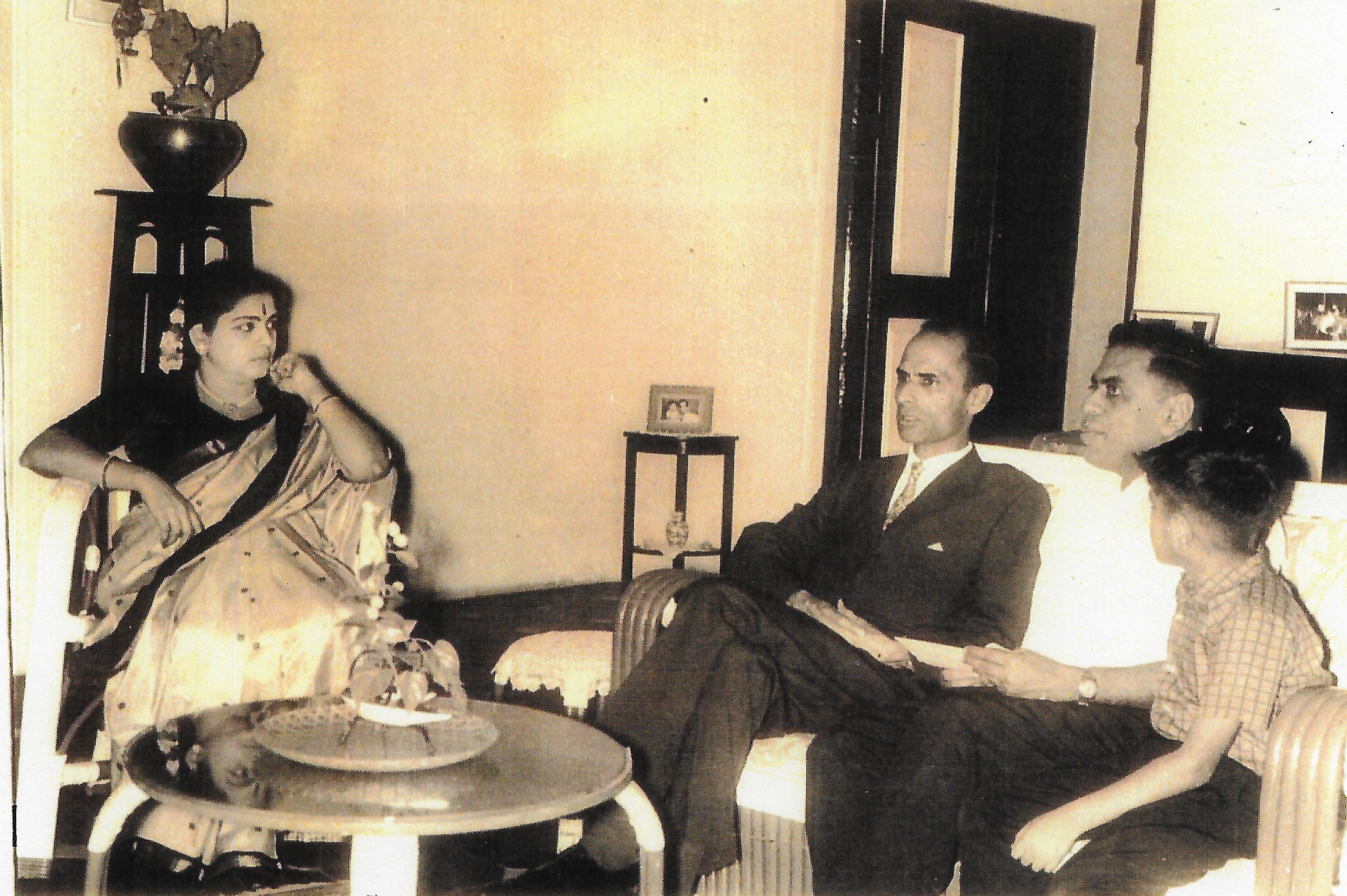 Alladi Ramakrishnan in conversation with Harish Chandra at Ekamra Nivas. Lalitha Ramakrishnan and nine year old Krishna are looking on.