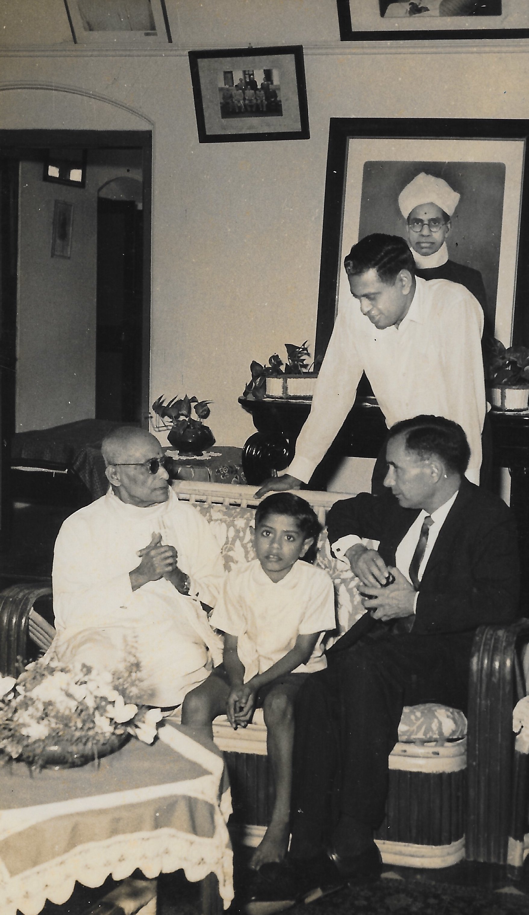 Prof. Schiff in conversation with Justice Patanjali Sastri. Alladi Ramakrishnan in the rear. Young Krishna between Schiff and Sastri.