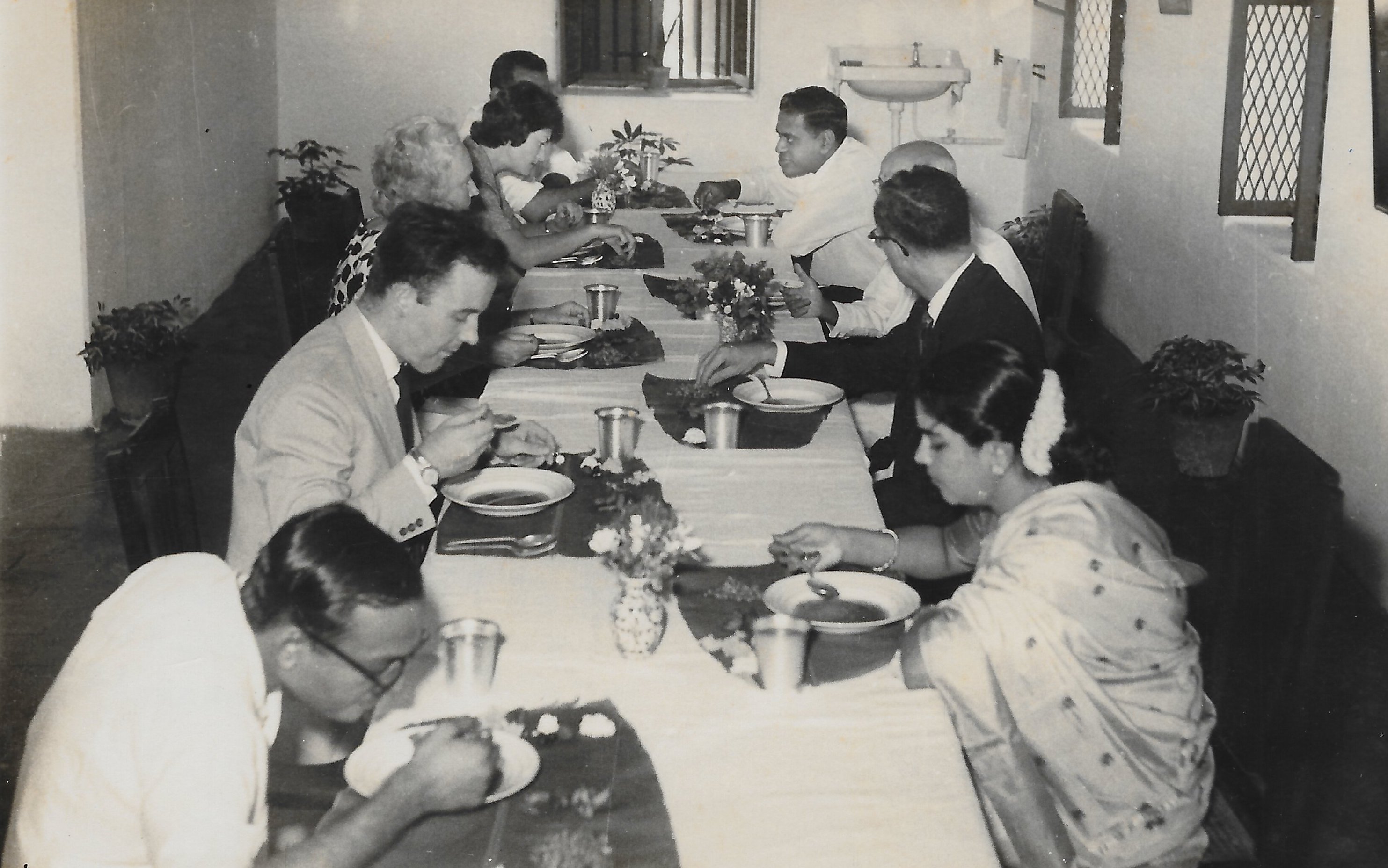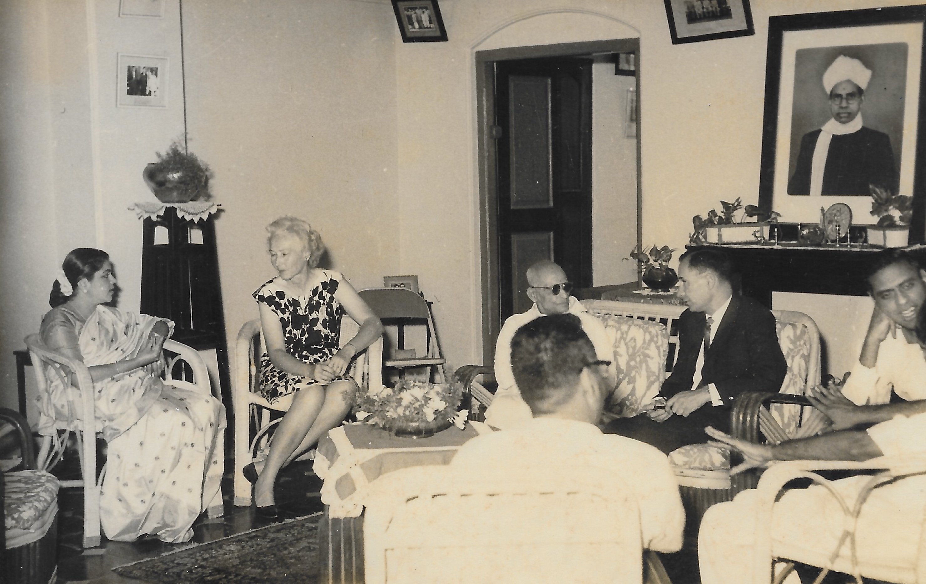 Prof. Leonard Schiff in conversation with Justice Patanjali Sastri, and Lalitha Ramakrishnan in conversation with Mrs. Schiff.