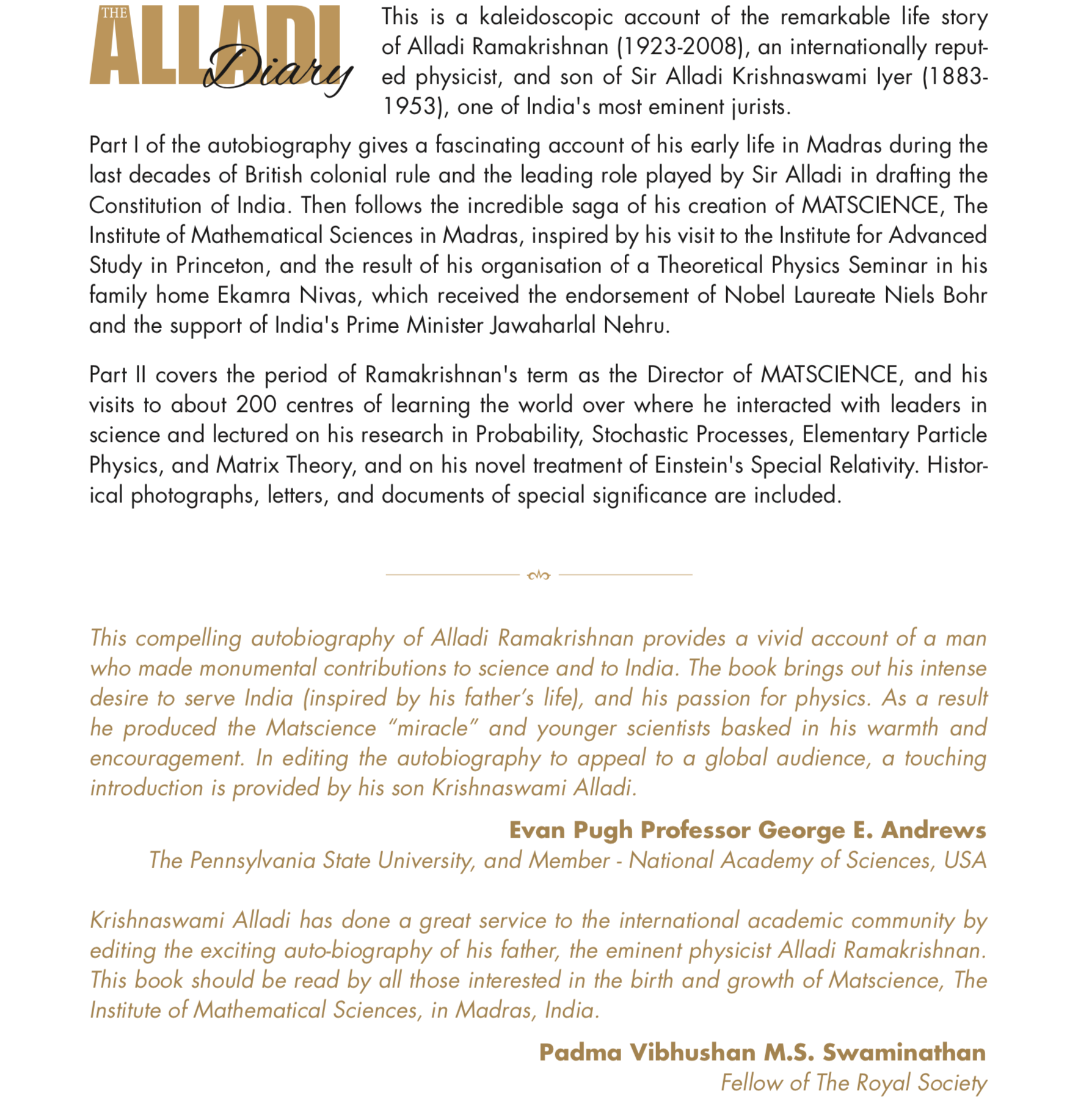 Memoirs of Alladi Ramakrishnan. Edited by Krishnaswami Alladi