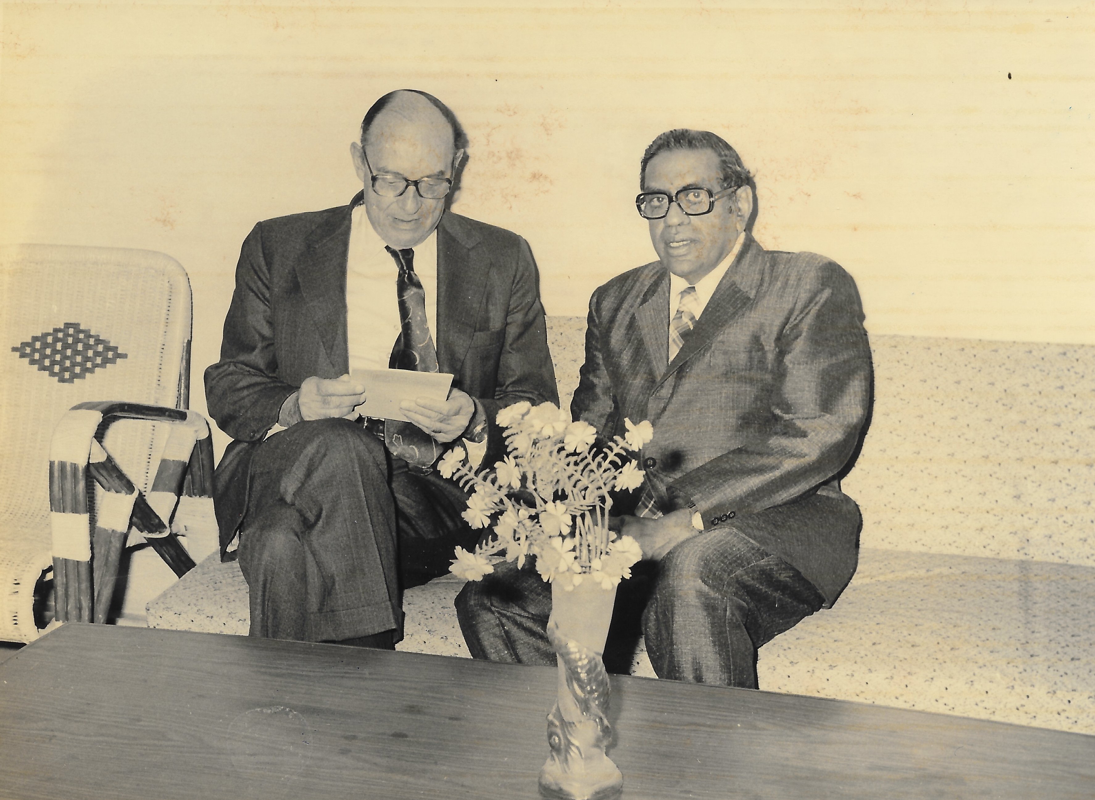Prof. John Bardeen is discussion with Prof. Alladi Ramakrishnan in the Director's office.