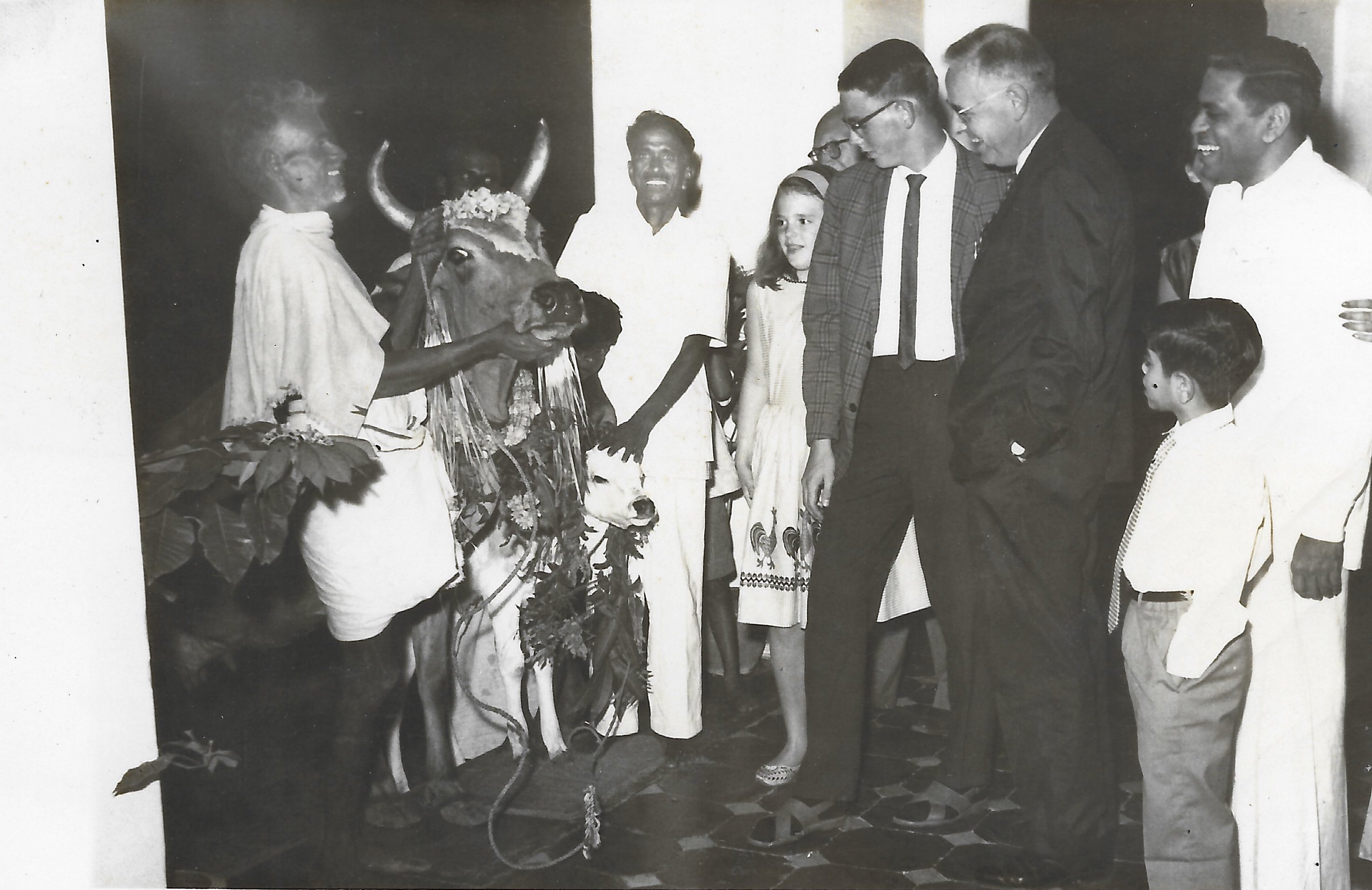 The Hazlett's were in Madras during the Pongal Season (Harvest Season). McCrea Hazlett and his son enjoy seeing the cow and calf that the Alladi family have.