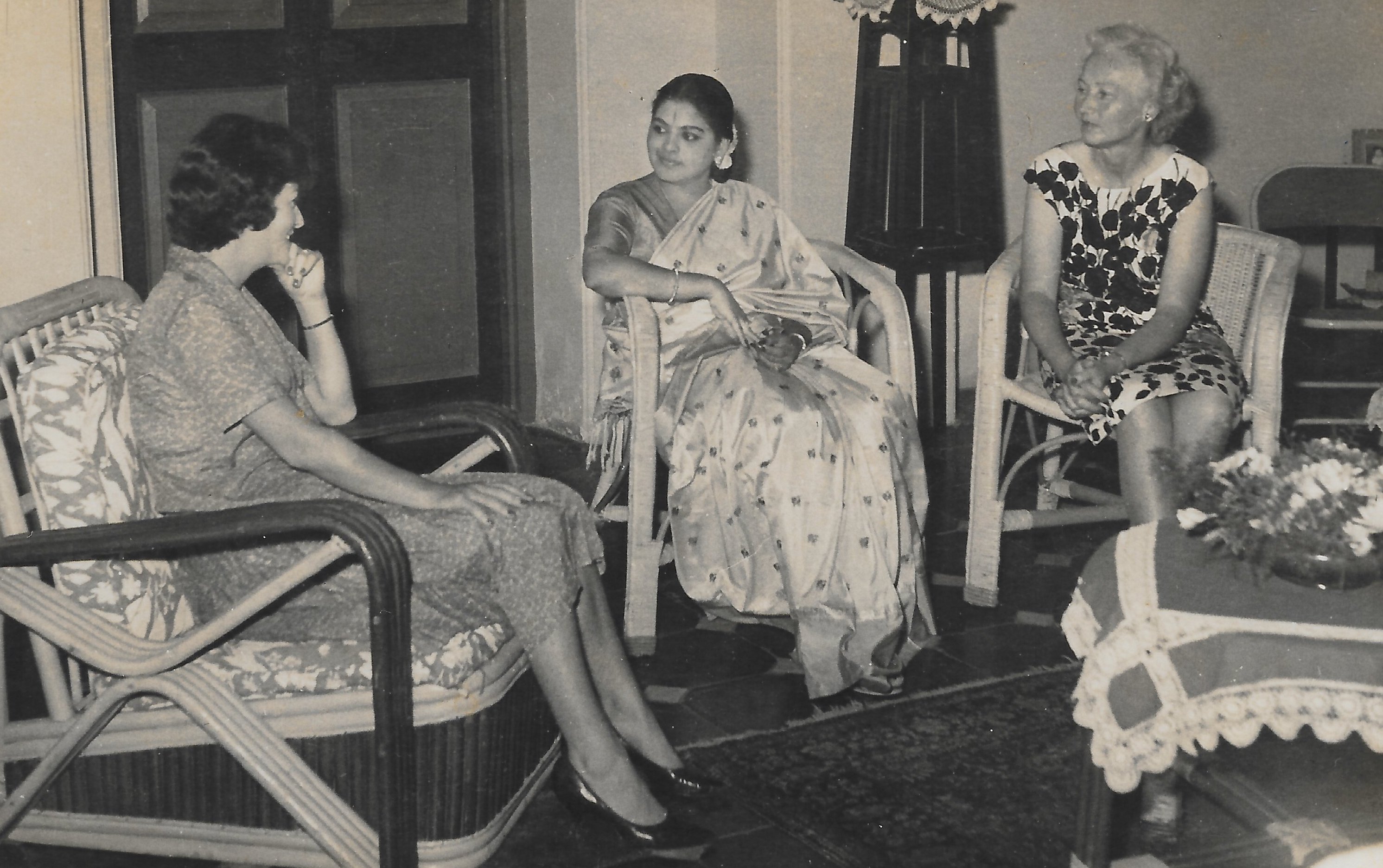 Prof. Leonard Schiff in conversation with Justice Patanjali Sastri, and Lalitha Ramakrishnan in conversation with Mrs. Schiff.